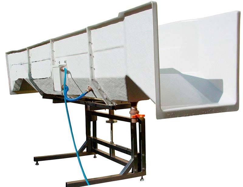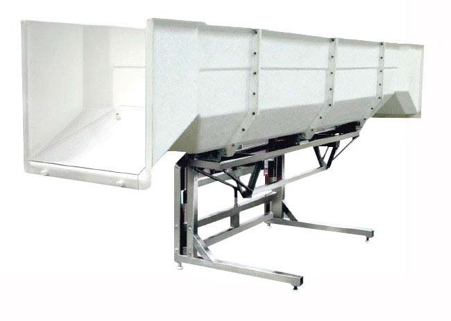 A cuba para insensibilização de aves é fabricada em fibra de vidro com estrutura principal em aço inoxidável com regulagem de altura e conta com eletro em alta frequência, além de módulos resistentes moldados. O equipamento em formato de cuba para atordoamento de aves é indicado para casas de abate com velocidade mínima que varia entre 2.500 até 12 mil aves/hora.